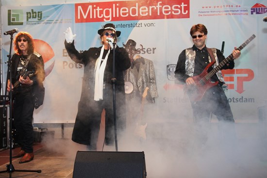 Die Besucher erlebten ein breitgefächertes kulturelles und musikalisches Programm. Eröffnet wurde das Fest mit dem Landespolizeiorchester des Landes Brandenburg. Die offizielle Begrüßung übernahmen die Vorstände von pbg und PWG 1956. Der Schneiderkurs von Genossenschafts-mitgliedern präsentierte selbstgeschneiderte aktuelle Mode, die Schnellzeichnerin Barbara Schleuer führte Porträts aus, und ein Kinderballett zeigte sein Können. Mit der „Kaiserparty“ von Steffen Heidrich, der als einer der besten und bekanntesten Roland-Kaiser-Doubles gilt, war gute Stimmung bei den vielen Besuchern vorbestimmt. DJ Heiko Schnörpel sorgte zwischen den Programmpunkten für den richtigen Musikmix.![]()