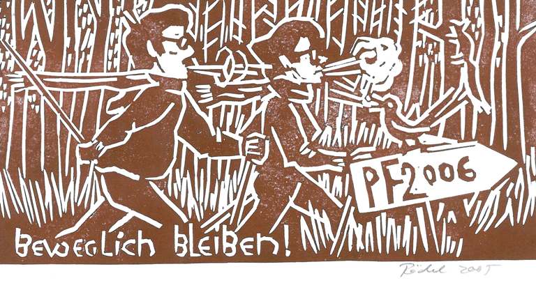 Thematisch ist Wieland Rödel in seiner Malerei vielseitig interessiert. Ansichten von Potsdam und von Landschaften gehören zu seinen beliebtesten Motiven. Mit seinen Karikaturen erschließt sich uns nun ein neues Genre seines künstlerischen Schaffens.